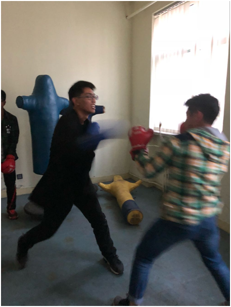 在参观中,心缘坊副站首先带着心理委员和心理联络员参观了各个房间,并简单介绍了各个房间的用途。其中,同学们对沙盘室和宣泄室尤为感兴趣。在沙盘室中,同学们主动提出疑问,心理辅导员作出了详细的解答,让学生们了解到了一种无声的表达方式——通过在沙盘上布置自己的“世界”吐露自己的心声。在宣泄室,同学们体验了通过击打人偶发泄情绪的这一调整情绪的方式。