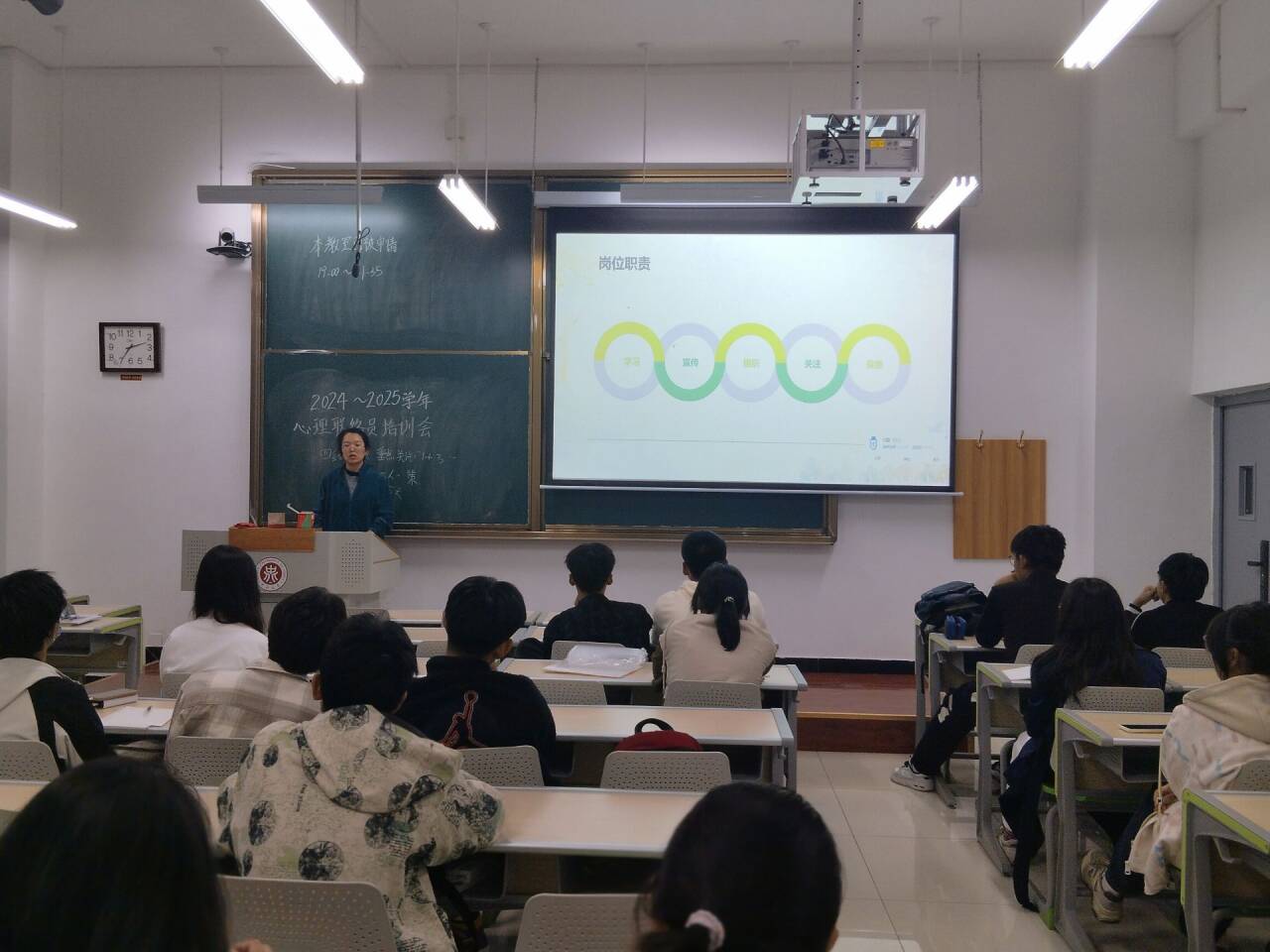 于17103Z举行本学期第一场心理联络员培训会。学院心理站负责老师谷磊磊及心理站和学院各班心理联络员参加会议。
