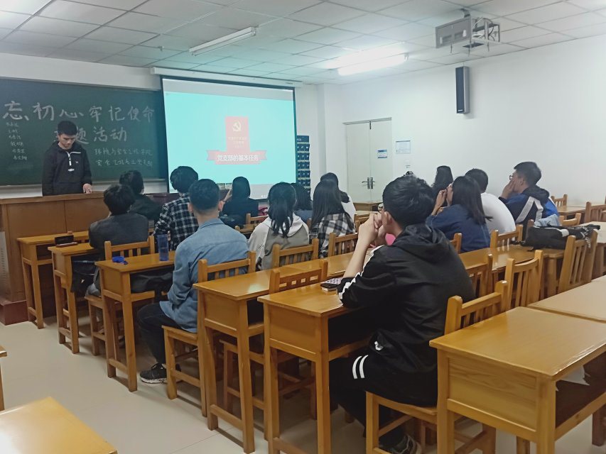 安全工程学生党支部于2019年4月21日在16503Z举办“不忘初心、牢记使命”主题教育活动,组织全体学生党员学习《中国共产党支部工作条例(试行)》,进一步加强基层党组织建设,进一步加强学生党员的党性。