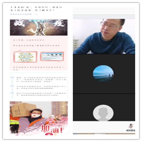 学院党委副书记张少明组织召开学院辅导员视频会议、学生干部工作视频会议,落实学校抗疫期间学生教育工作精神。学院各班和团支部通过QQ群、微信群等“云”载体开展形式多样、内容丰富的“云”班会暨主题团日活动,号召全体学生增强抗疫信心、掌握防疫知识、提升防疫技能、提高政治辨识力,用实际行动助力疫情防控。组织落实好“全国大学生同上一堂疫情防控思政大课”工作。持续推进“青年大学习”工作,做到在思想教育引领和政治学习上没有一个学生掉队。