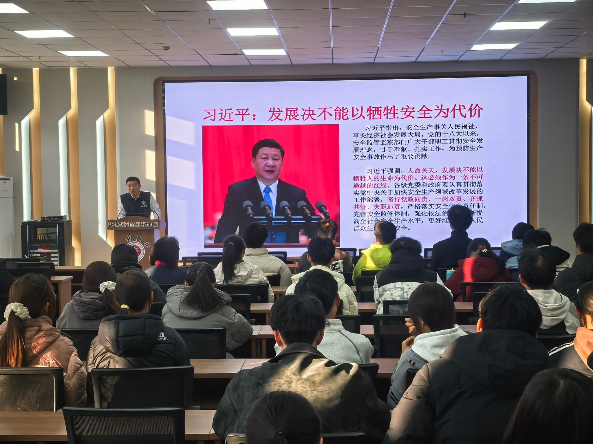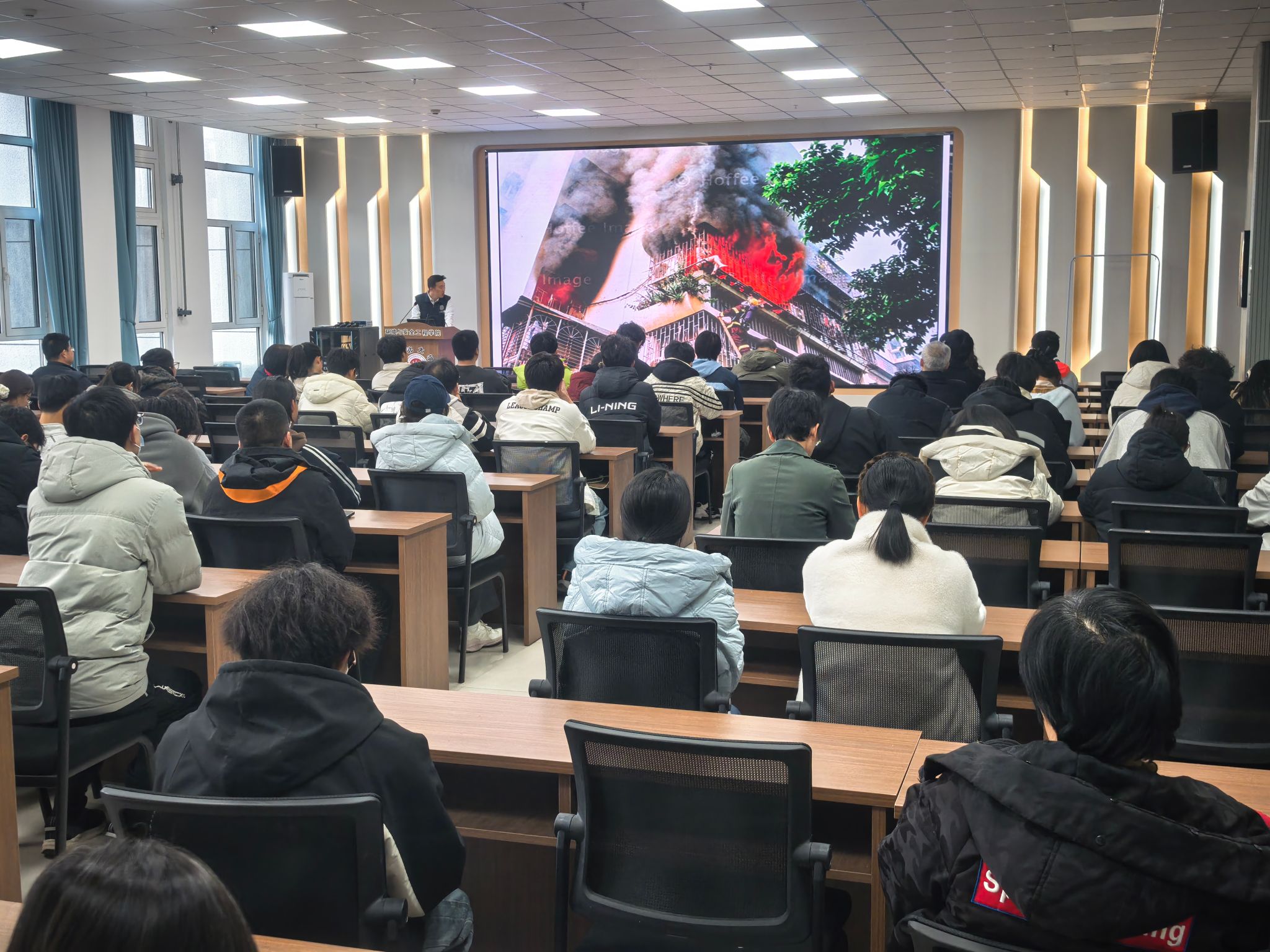 讲座中,苏老师结合校园消防安全特点,以真实火灾案例为切入点,通过图片、视频等直观形式,详细讲解了火灾成因、火灾报警流程、初期火灾扑救技巧等核心知识。针对办公室、教学楼、宿舍等重点场景,重点演示了干粉灭火器、消防栓的正确使用方法,普及了疏散逃生时的注意事项,如低姿弯腰、湿巾捂鼻、有序撤离等关键技能。同时,苏老师还就日常用电安全、易燃易爆物品存放、电动车规范充电等常见安全隐患进行了细致提醒,引导教职工树立“隐患险于明火,防范胜于救灾”的安全理念。