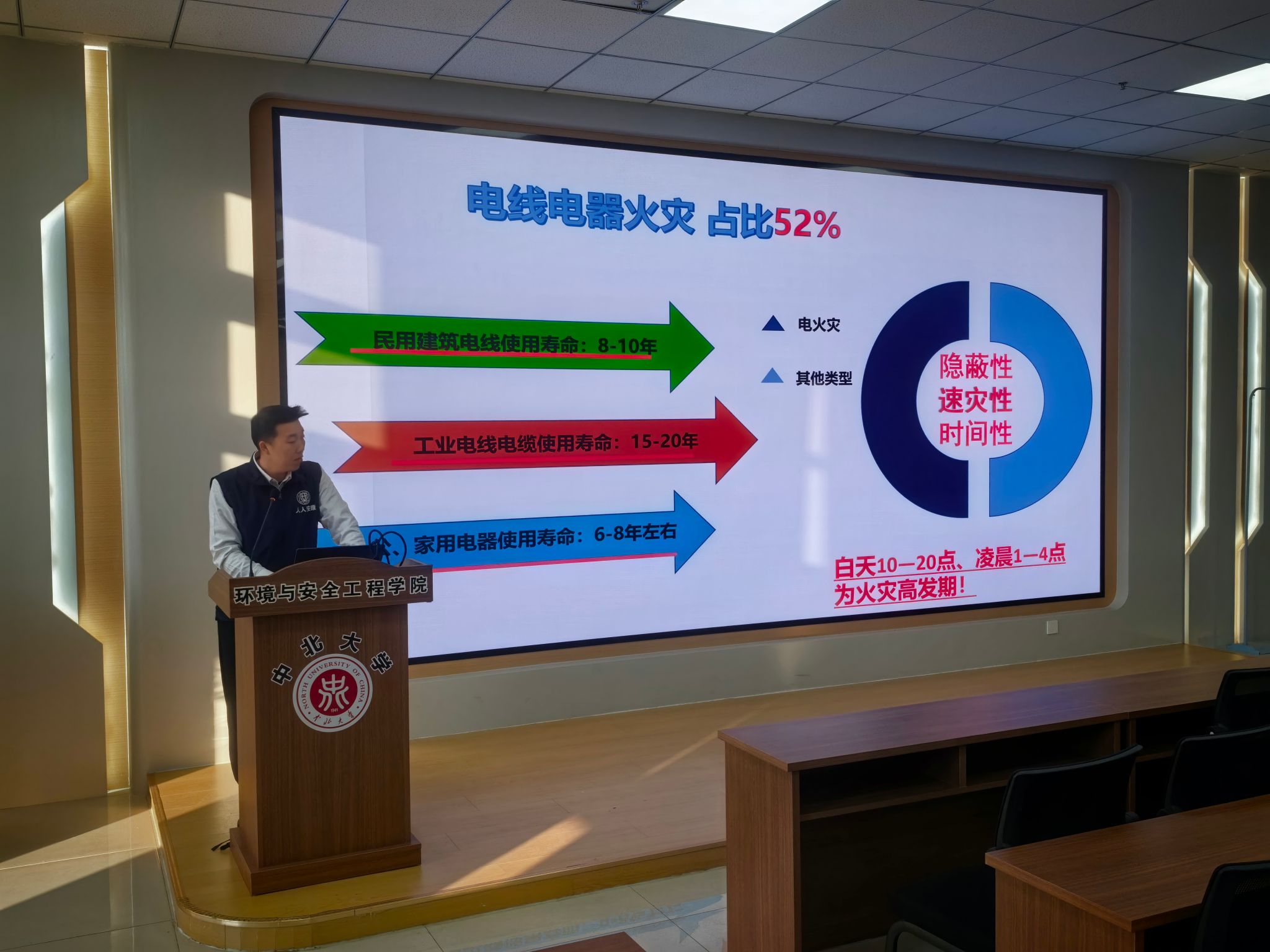 特邀山西安康社会服务中心、安全健康教育网山西站副主任讲师苏宇豪,为全体教职工开展消防安全知识专题讲座。