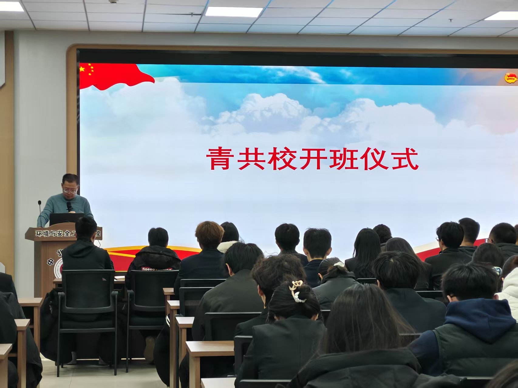 在学院报告厅隆重举行学生组织换届大会暨第九期青年共产主义学校(青共校)培训开班仪式。院党委副书记张少明、团委书记陈靓、辅导员及全体学员出席仪式,院党委副书记张少明主持仪式。