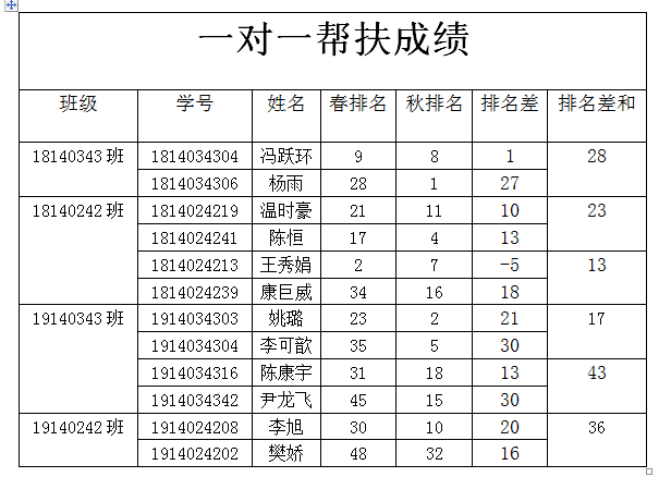 “一对一帮扶”活动共开展了18余次,学生党员干部主动结对子承担帮扶义务,充分发挥了学生党员干部的先锋模范带头作用。同学们积极响应,热情参与,自习情况良好。学期末活动结束后,根据各个小组的出勤数据和考试成绩排名,对每个小组的帮扶成果进行评析,评选出优秀“一对一帮扶”小组进行表彰。评选结果如下:
