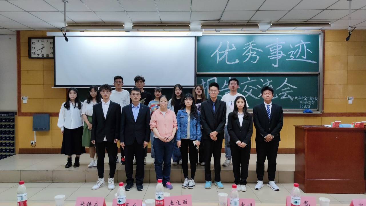 在09102H召开优秀事迹报告会。院党委副书记张少明、学生科长陈靓、辅导员赵雅欣、张铁成参会。