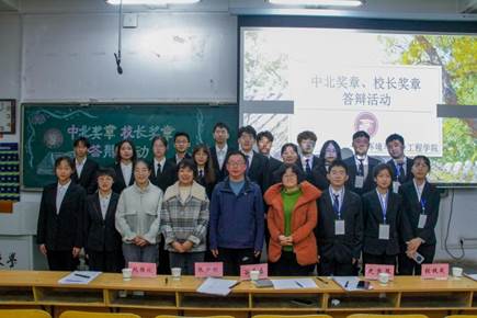 共有五名学生参与校长奖章答辩,两个班级参与中北奖章答辩。首先进行的是校长奖章答辩,五名学生分别对思想模块、学习成绩、竞赛科研、社会实践等多方面进行了阐述,各位同学优秀的成绩和经历都让在场的新生惊叹不已。中北奖章中两个班级分别从班级介绍、学风建设、政治素养、未来展望四个方面进行叙述,向评委和观众展示了班级成立之初到成长为先进班集体,再到冲击中北奖章的成长历程。在整个答辩过程中,无论是班级还是个人,都准备的十分充分,通过展示证书,奖状,数据的形式来对丰富自己的答辩内容。各位评委老师仔细聆听,认真记录,最后对每位同学都进行了点评。