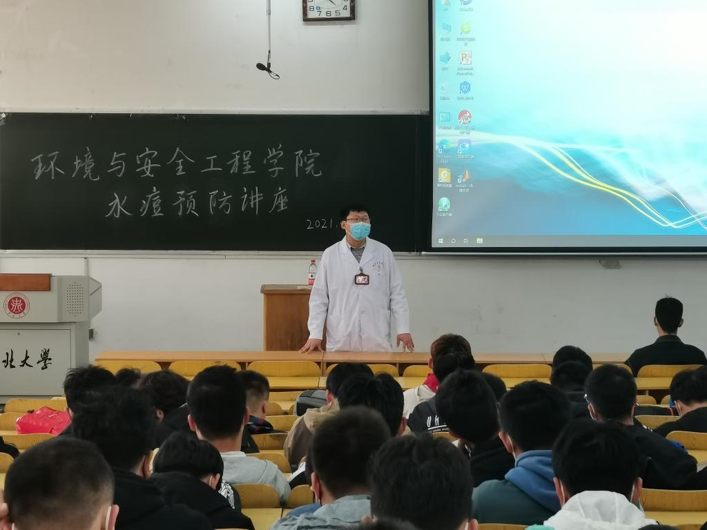 校医院公共卫生科医师赵海滨在10202H召开水痘预防讲座。讲座由辅导员张铁成主持,19级特能专业全体学生参加。